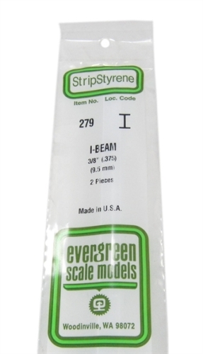 Evergreen Plastic 279 0.375 (9.5mm) I beam section - 2 per pack