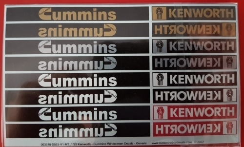 Custom Hobby Australian Decals 1/ 25 Kenworth - Cummins Windscreen Decals Large
